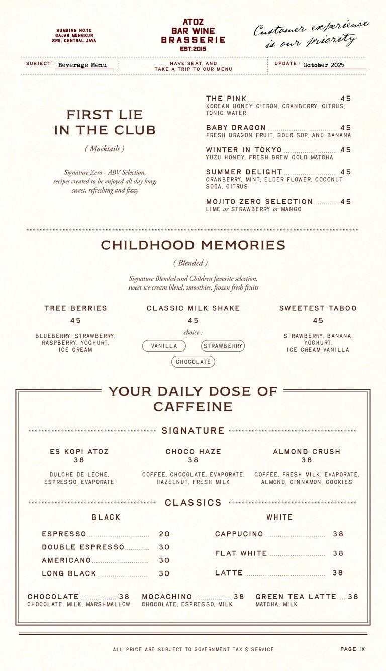 Menu Beverage