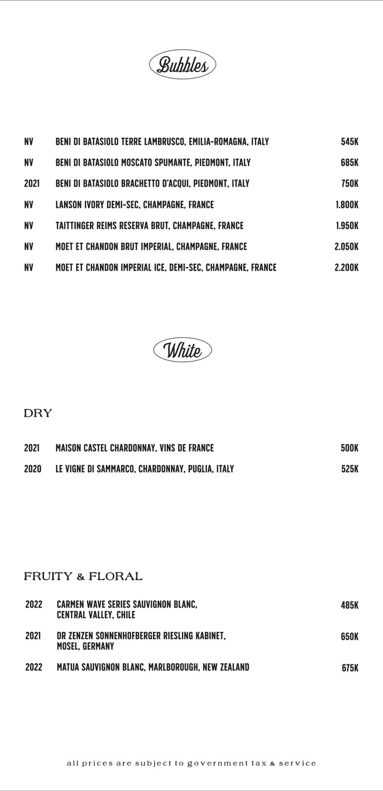 Wine List